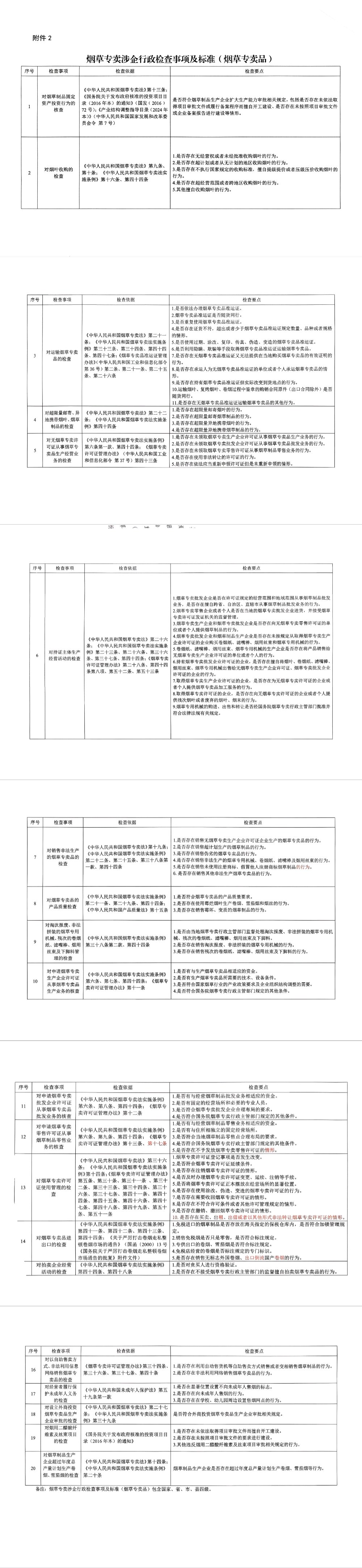 高邑县烟草专卖涉企行政检查事项及标准(烟草专卖品)