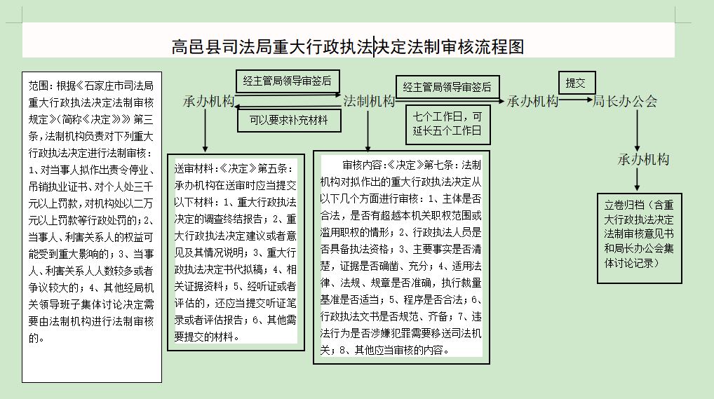 高邑县司法局重大行政执法决定法制审核流程图