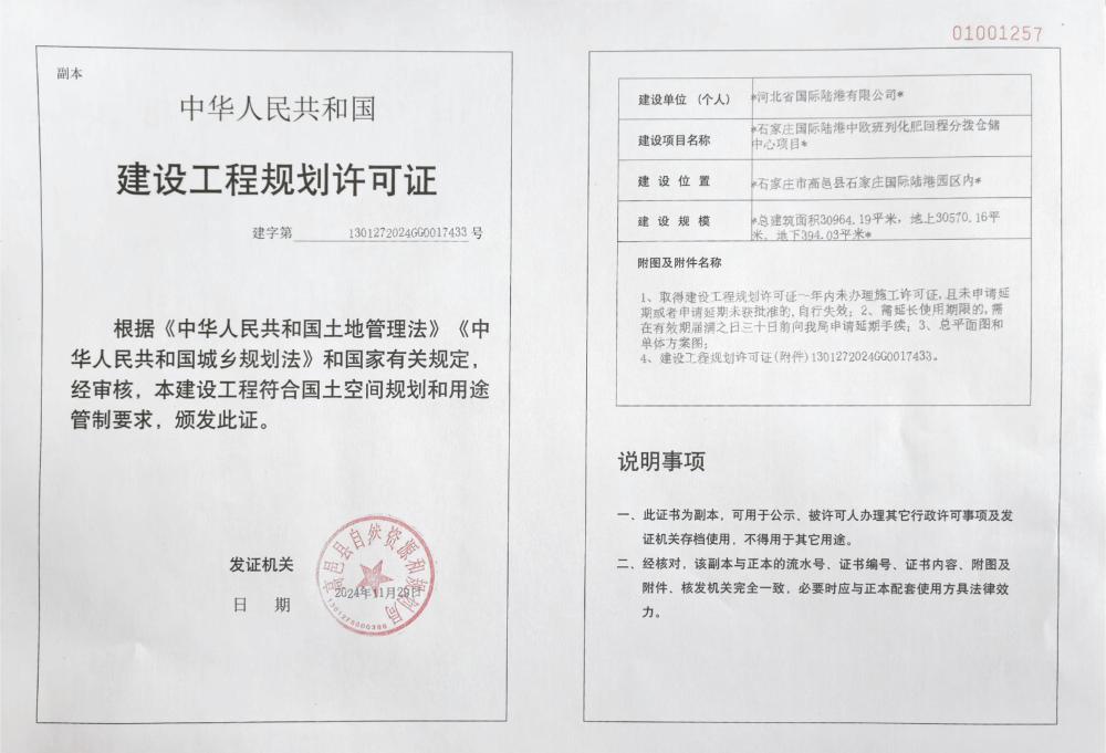 石家庄国际陆港中欧班列化肥回程分拨仓储中心项目建设工程规划许可