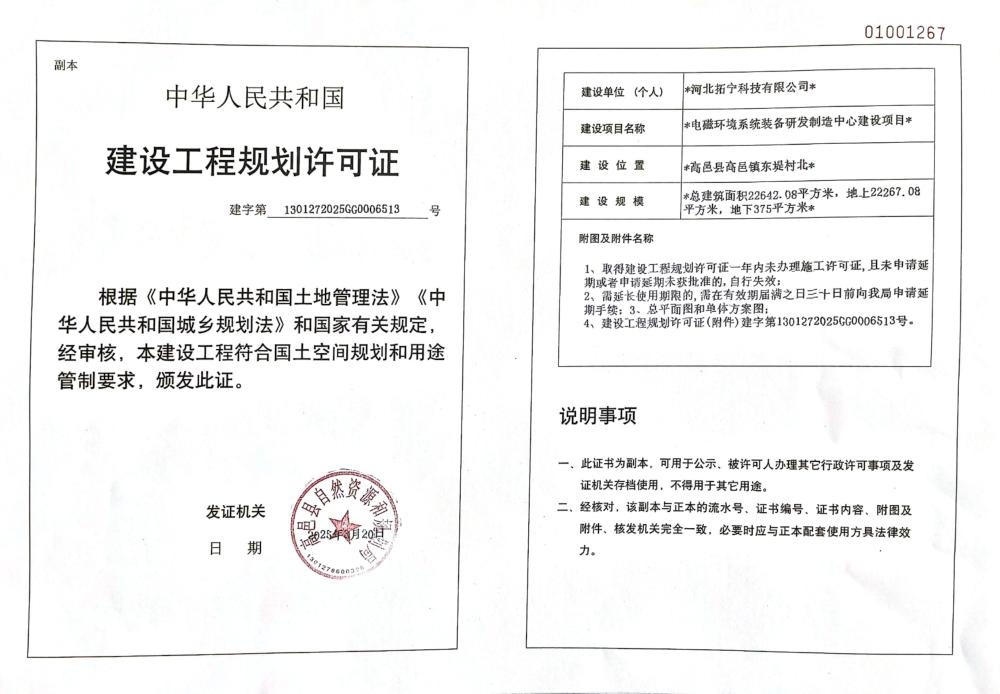 电磁环境系统装备研发制造中心建设项目建设工程规划许可
