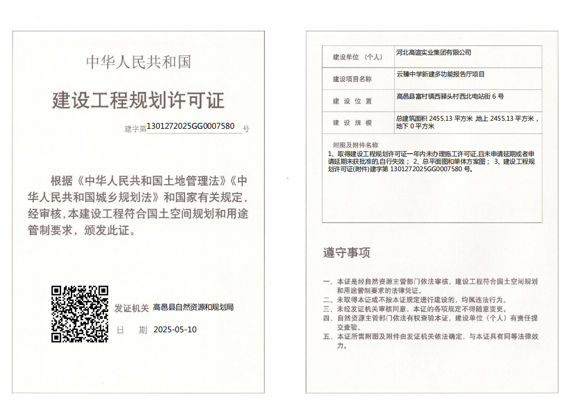 云臻中学新建多功能报告厅项目建设工程规划许可