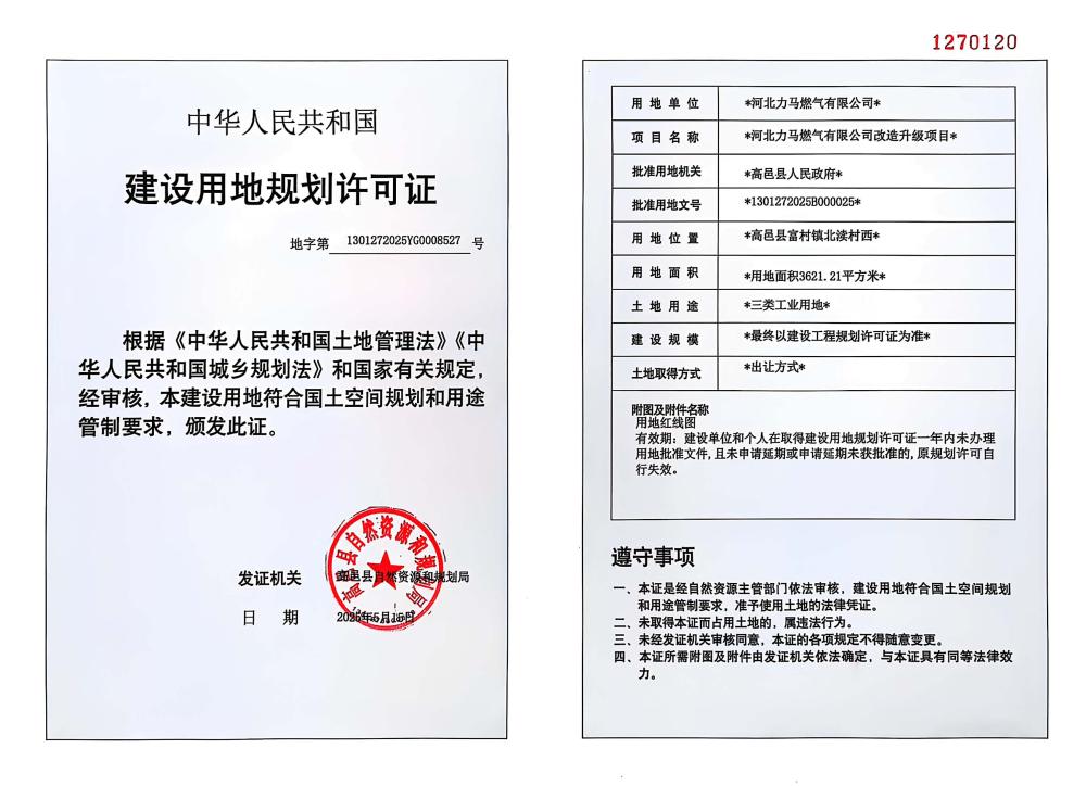 河北力马燃气有限公司改造升级项目建设用地规划许可证
