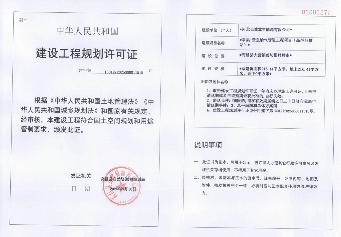 辛集-赞皇输气管道工程项目(高邑分输站)建设工程规划许可