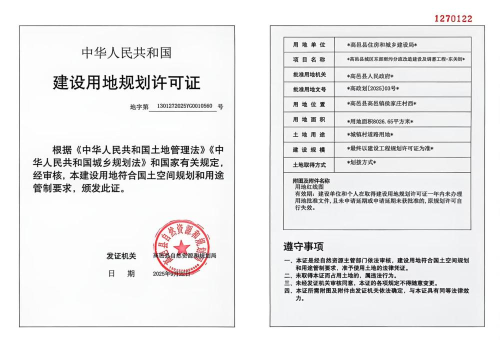 高邑县城区东部雨污分流改造建设及调蓄工程-东关街建设用地规划许可