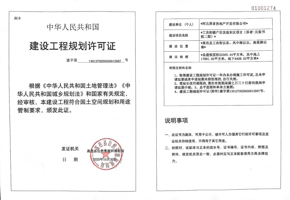 工农街棚户区改造东区项目(厚者-元玺书院二期)建设工程规划许可