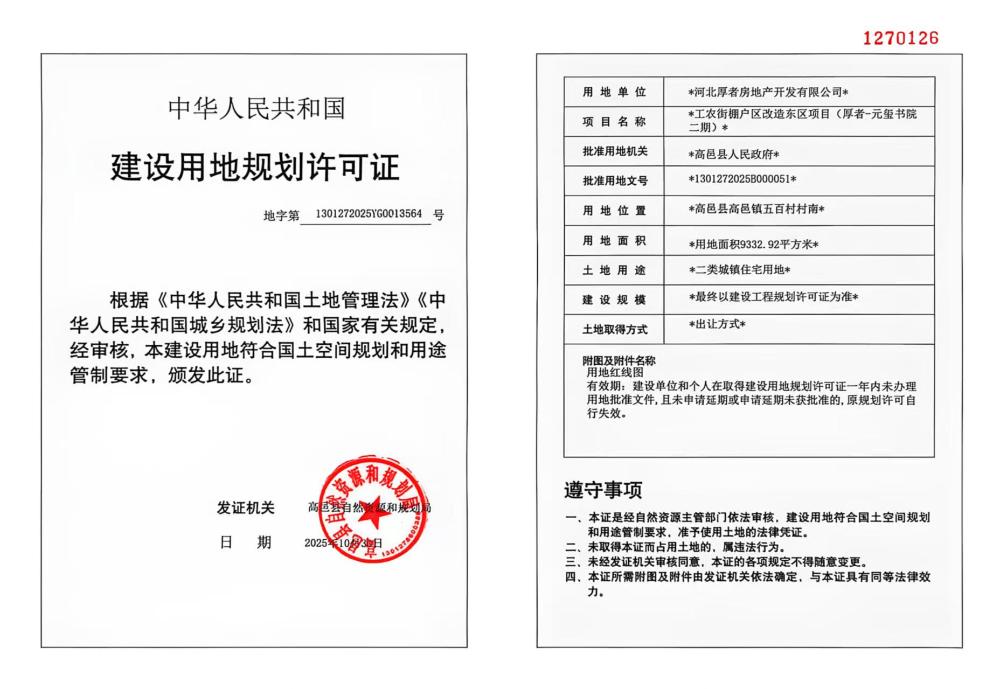工农街棚户区改造东区项目(厚者-元玺书院二期)建设用地规划许可
