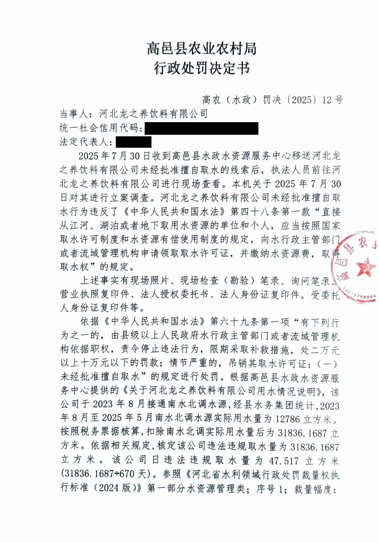 高邑县农业农村局行政处罚决定书高农(水政)罚决〔2025〕12号