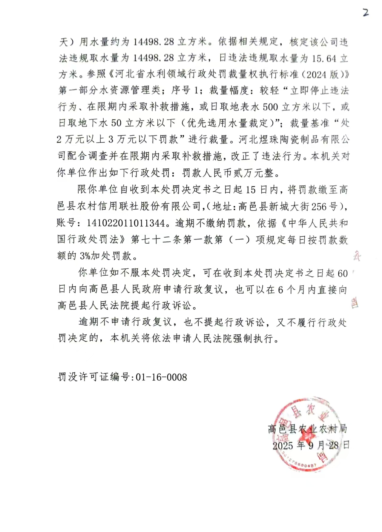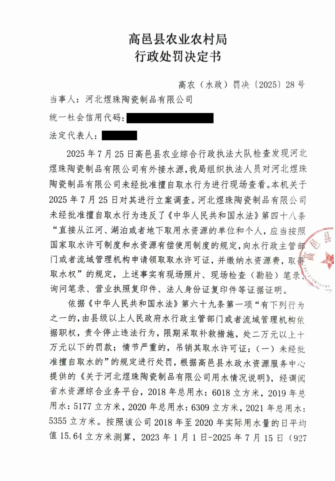 高邑县农业农村局行政处罚决定书高农(水政)罚决〔2025〕28号