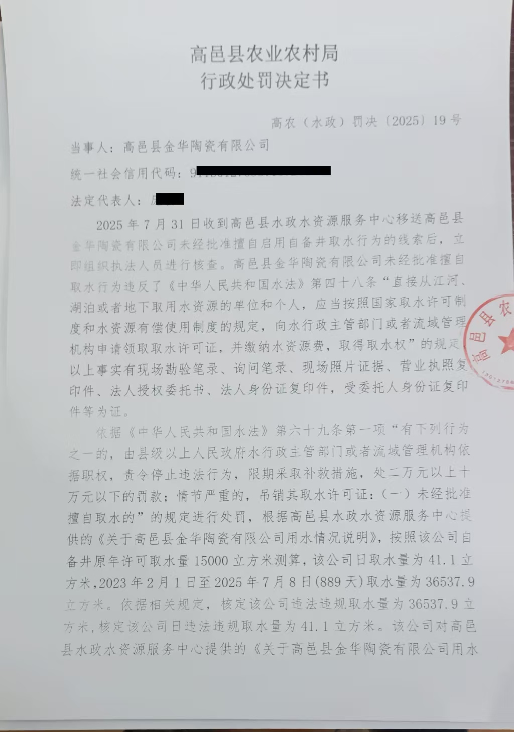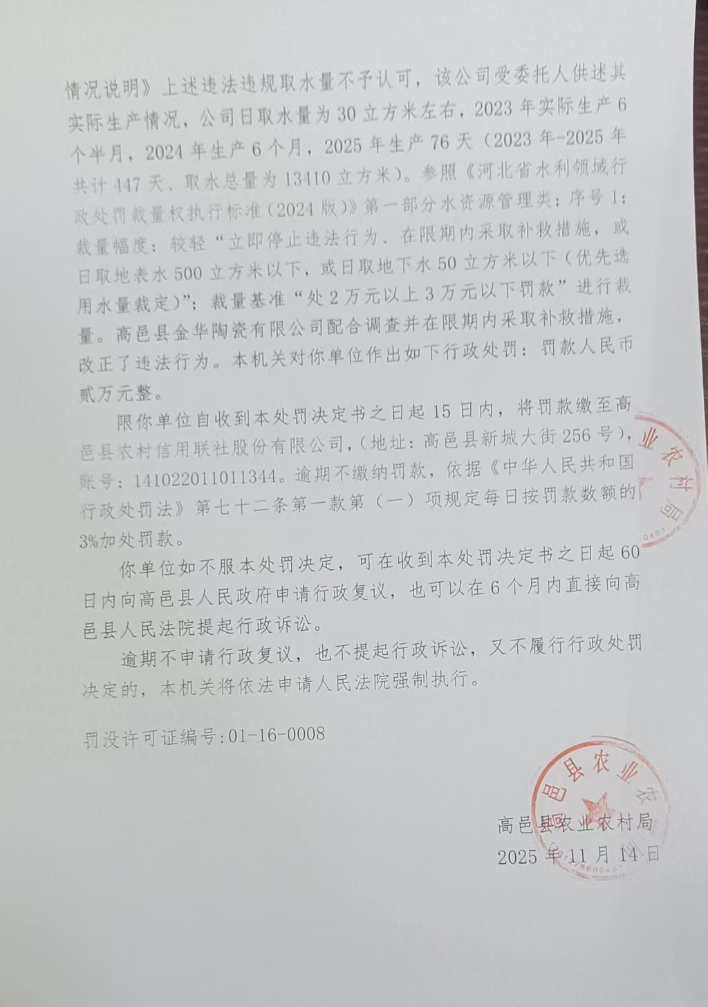 高邑县农业农村局行政处罚决定书高农(水政)罚决[2025]19号