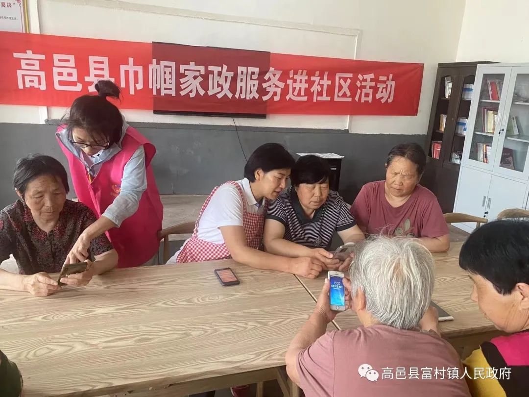 为帮助农村老年人跨越“数字鸿沟”,让老年人充分享受数字化、智能化带来的便利,近日,富村镇开展了巾帼家政服务进社区活动,帮助老年人使用智能手机,探索开启智慧养老模式。