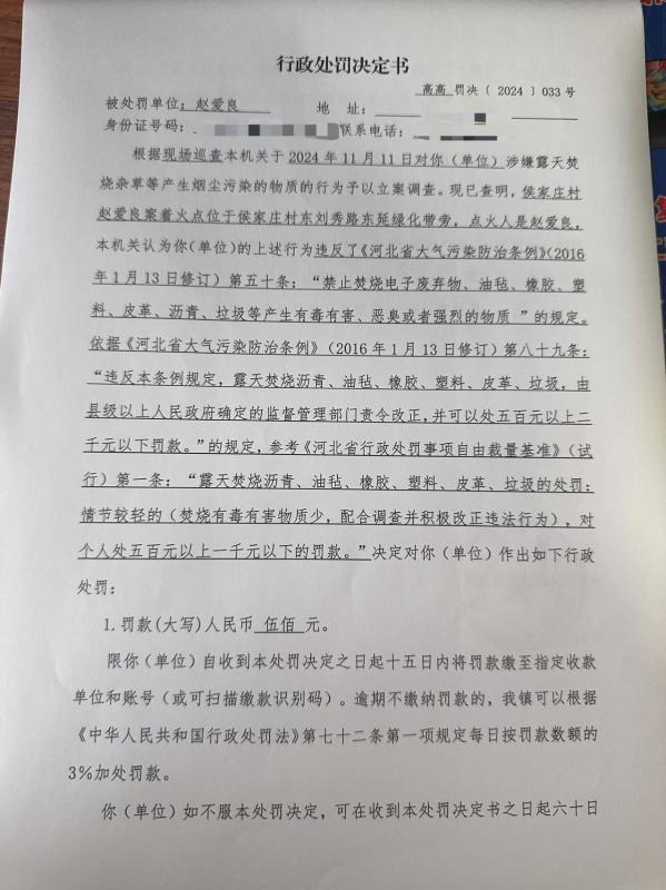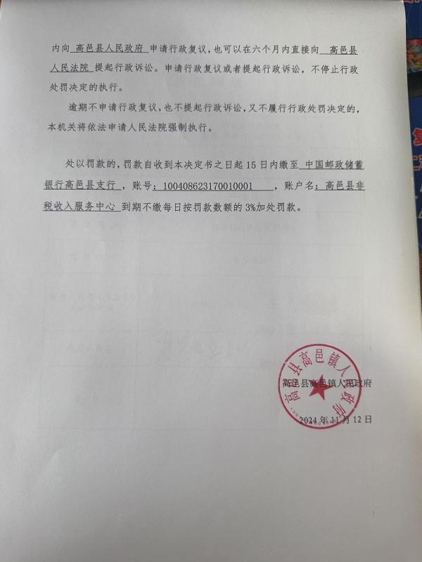 高邑镇对赵爱良的行政处罚决定书的公示