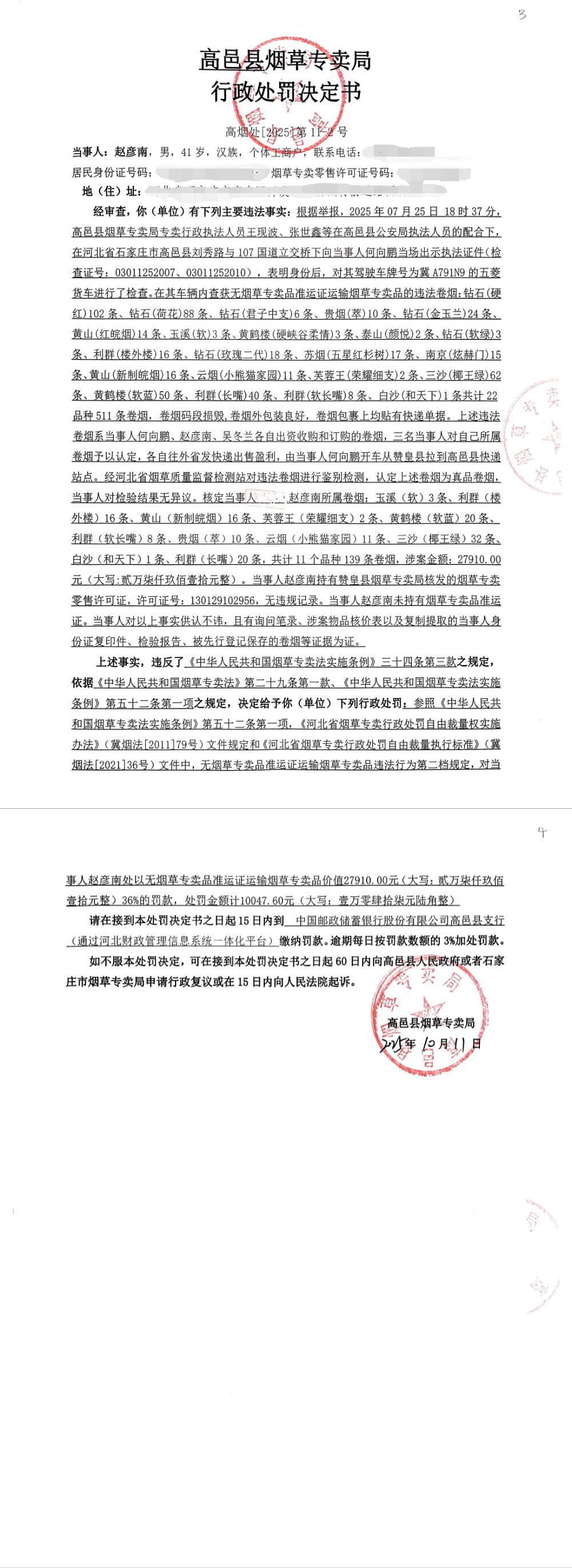 赵彦南的行政处罚决定书