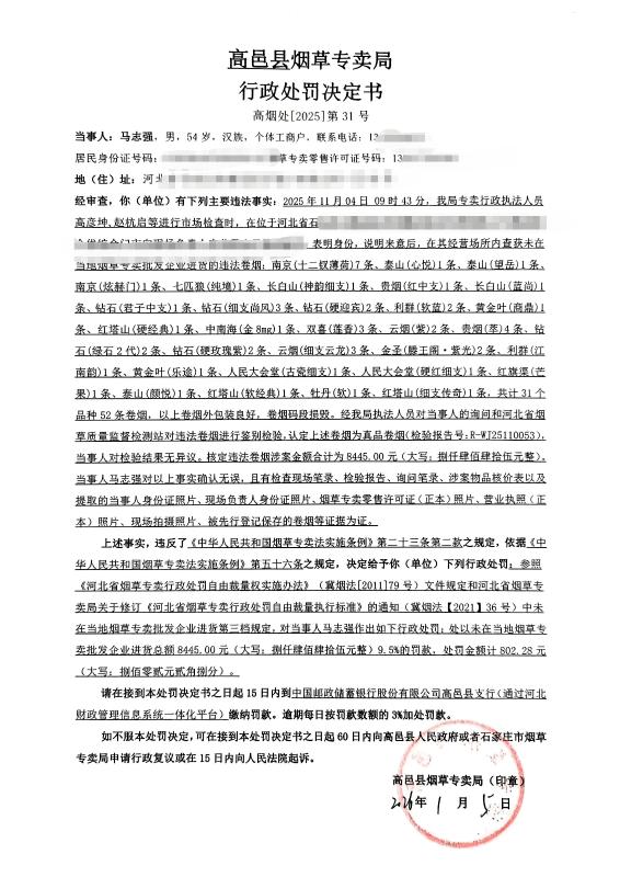 马志强行政处罚决定书