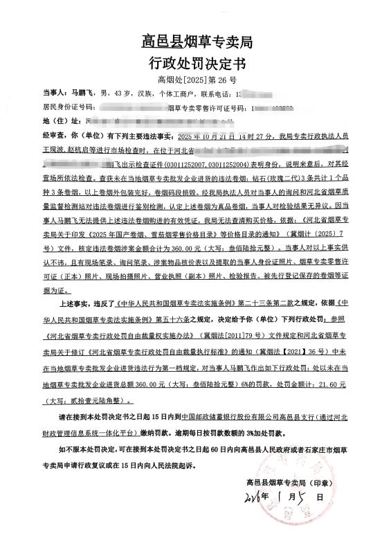 马鹏飞行政处罚决定书