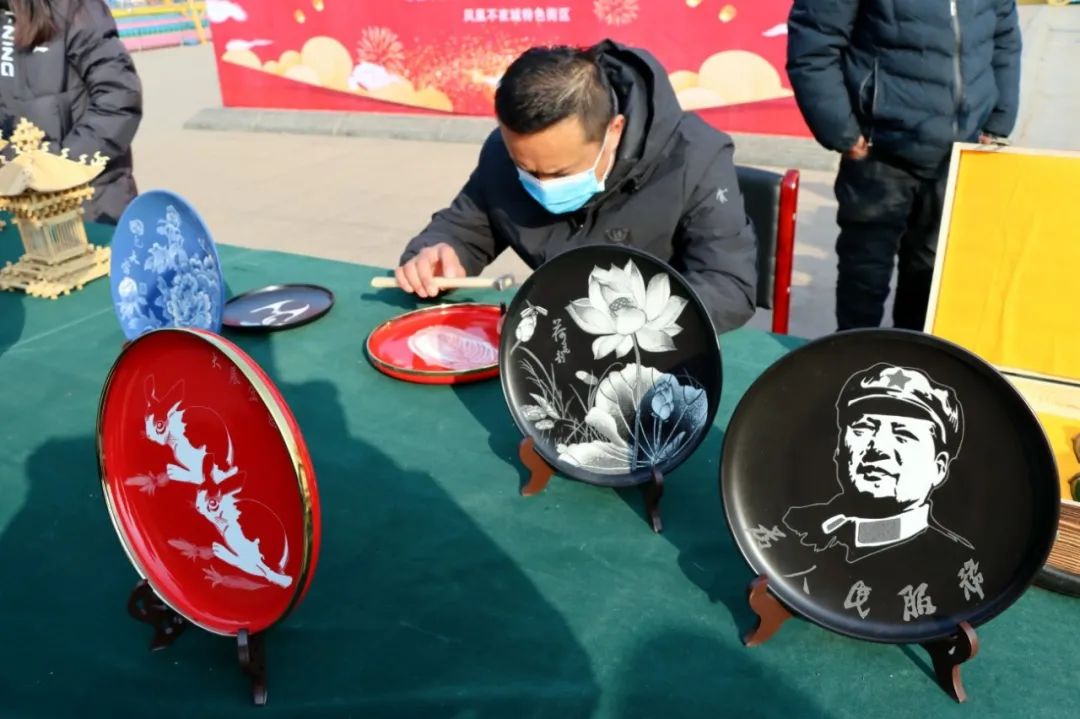 在我们的节日·元宵“文化进万家 非遗闹元宵”主题活动现场,国家、省、市非物质文化遗产项目,南岩乱弹、庄头剪纸、刻瓷技艺等十余个活动项目齐聚不夜城中心舞台前方,吸引了大量游客前来观看。