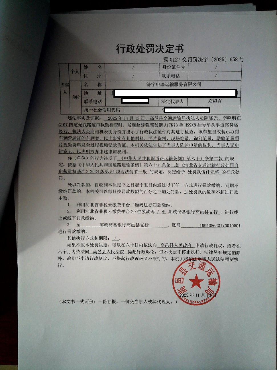 高邑县交通运输局 济宁申瑞运输服务有限公司擅自改装已取得车辆营运证的车辆案
