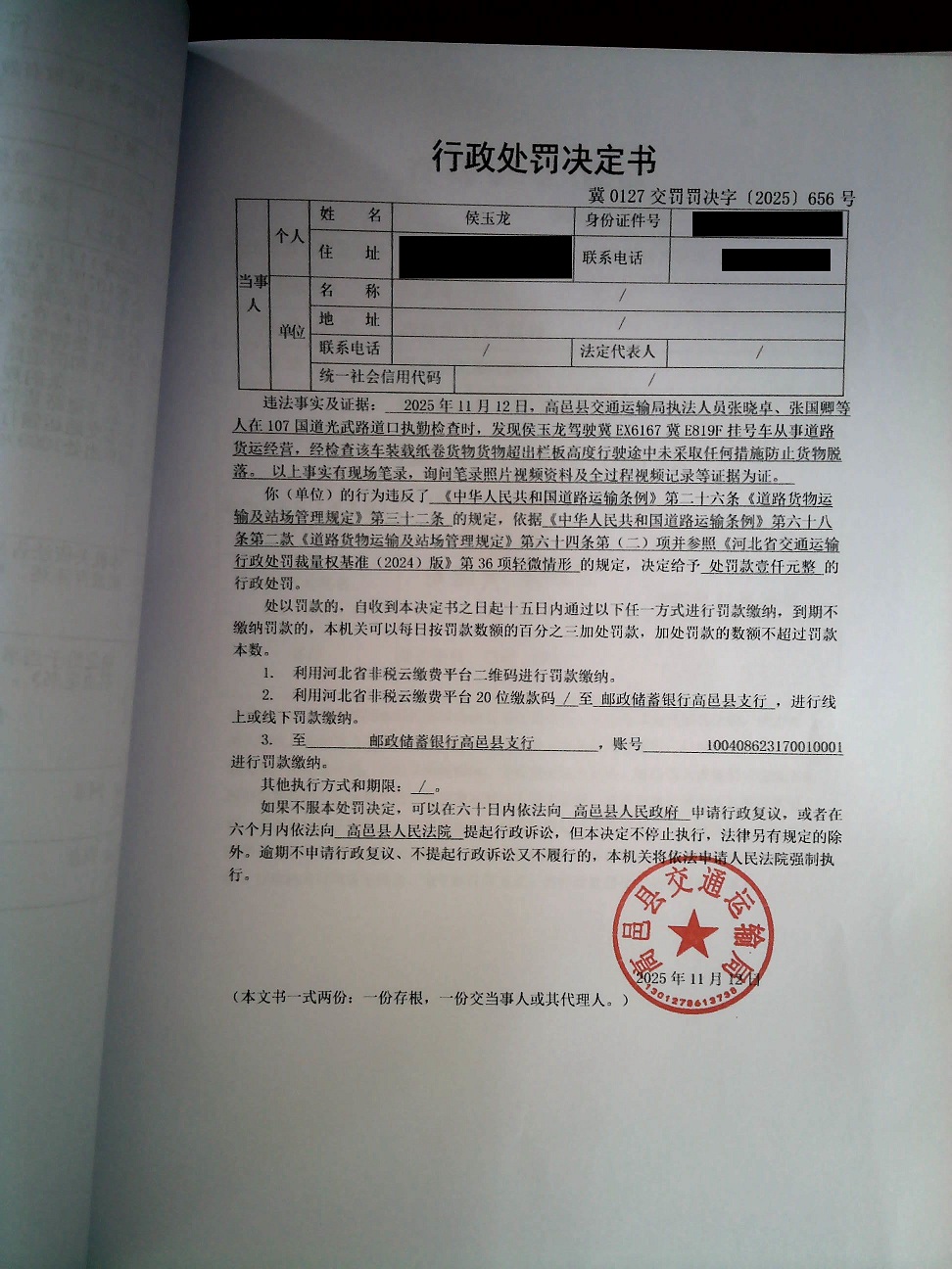 高邑县交通运输局 侯玉龙未采取有效措施防止货物脱落案