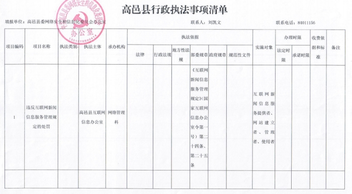 县级行政执法事项清单