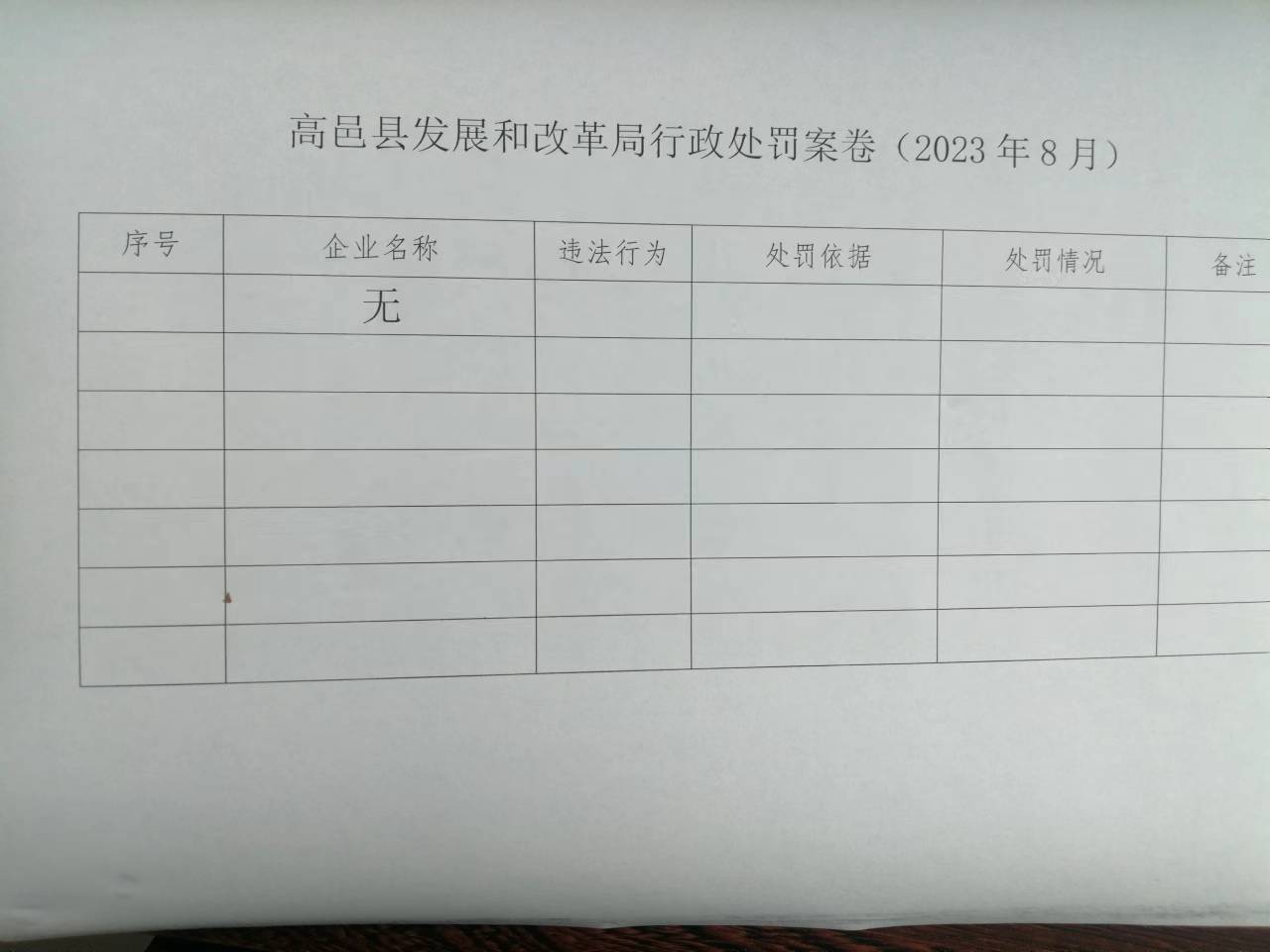高邑县发展和改革局2023年8月行政处罚案卷