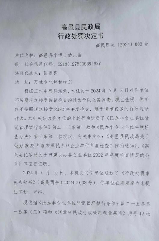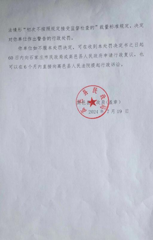 高邑县民政局行政处罚决定书