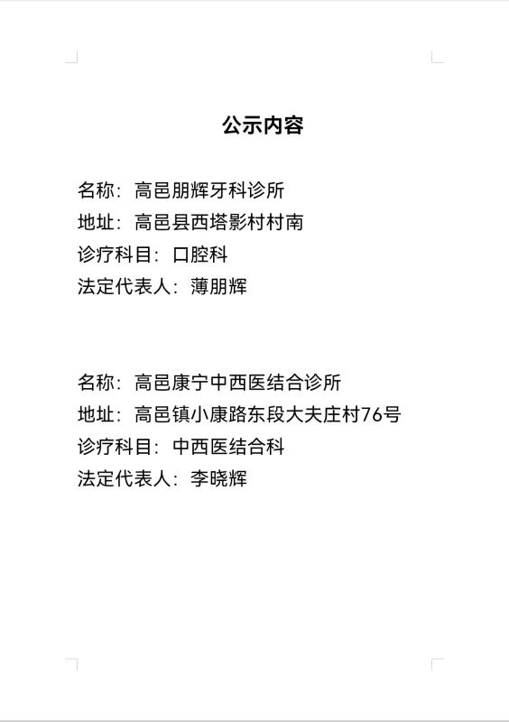 高邑朋辉牙科诊所和高邑康宁中西医结合诊所