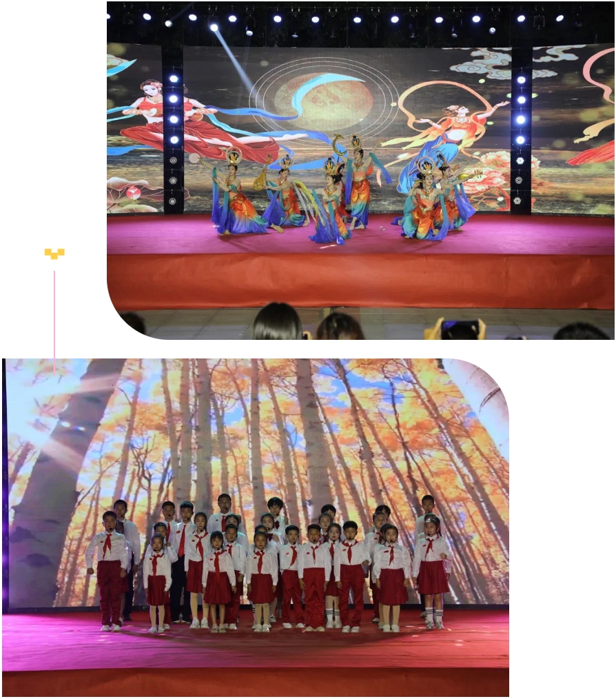 文艺晚会在开场舞《敦煌飞天》中拉开序幕,舞者身着绚丽的服装,用优美的舞姿表达了对美好生活的追求和向往。诗朗诵《绽放时代的风采》用深情的话语描绘了我县日新月异的变化。舞蹈《壮志少年行》让大家领略了热血少年的风采,感受他们的激情澎湃,见证他们在追逐梦想道路上的坚定步伐。小提琴独奏《千千阙歌》、朗诵《中华少年郎》、杂技《芭蕾顶技》、舞蹈《外婆桥》、魔术《鸽舞飞扬》、舞蹈《青春有你》等节目轮番上演,将现场气氛推向了高潮,精湛的技艺和深情的演绎赢得了观众的阵阵掌声。晚会在男生独唱《最亲的人》中落下帷幕,整首歌曲洋溢着温暖、幸福和真挚的情感。