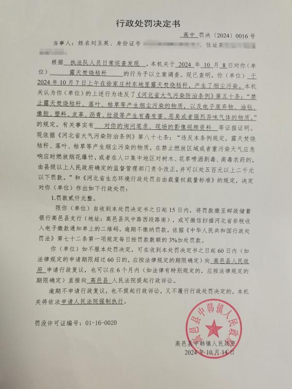 对刘**的行政处罚