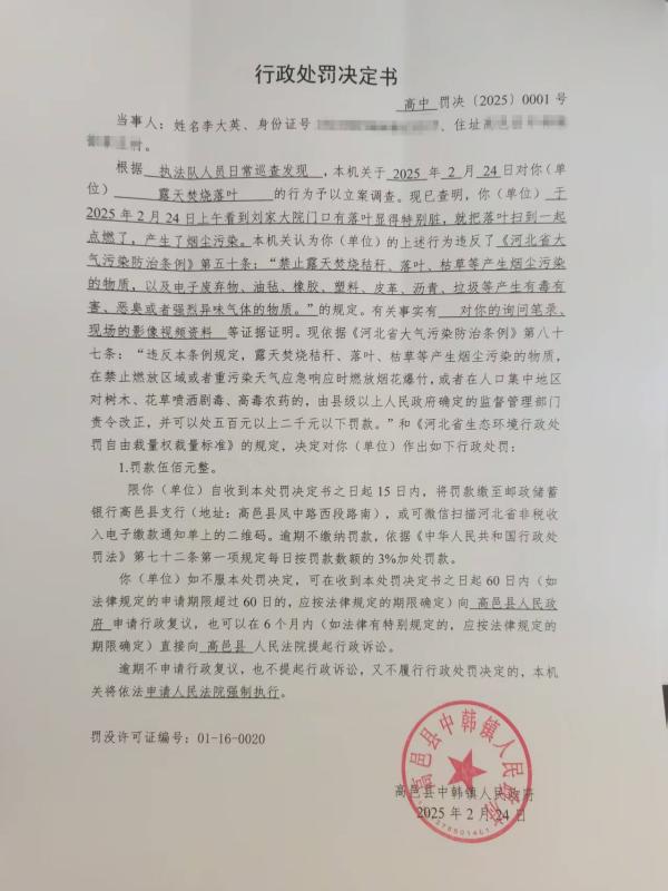 对李**的行政处罚