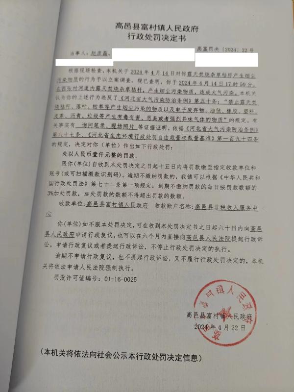 富村镇对赵彦磊行政处罚决定书的公示
