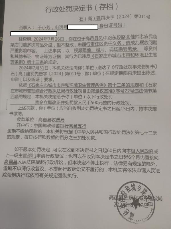 关于于小芳的行政处罚